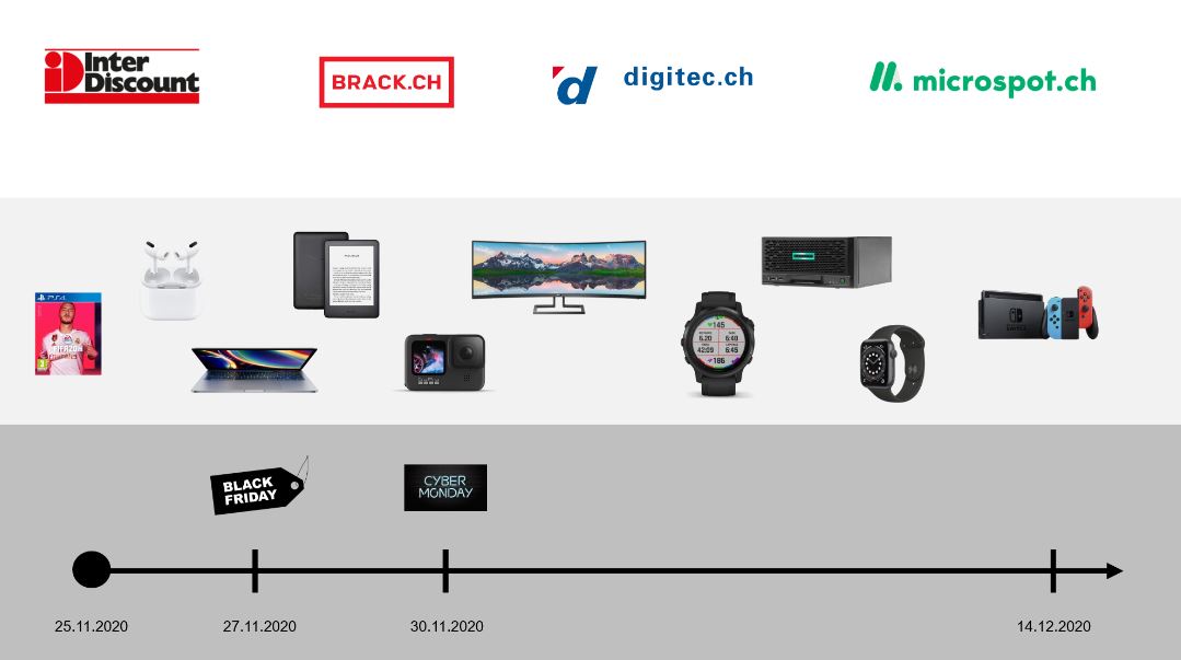 On Black Friday 9 out of 40 items decreased its price. The highest absolute decrease was CHF 330.-. 42% was the highest relative decrease.